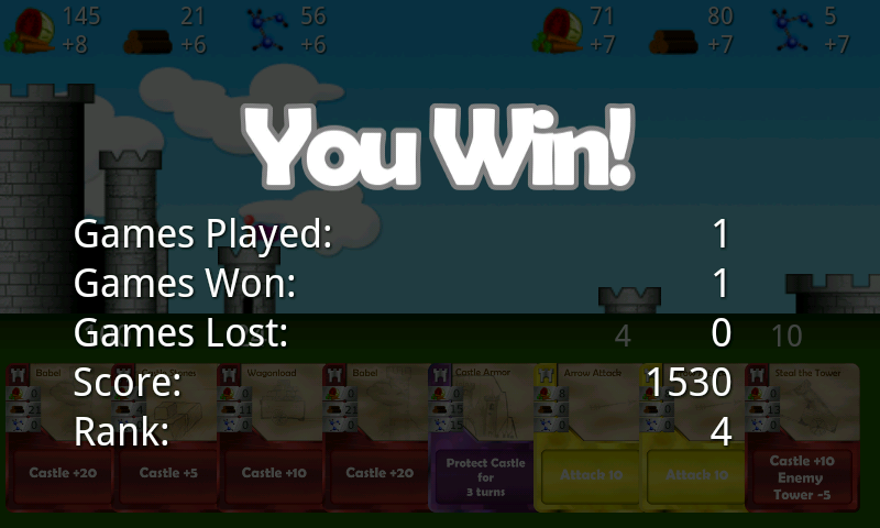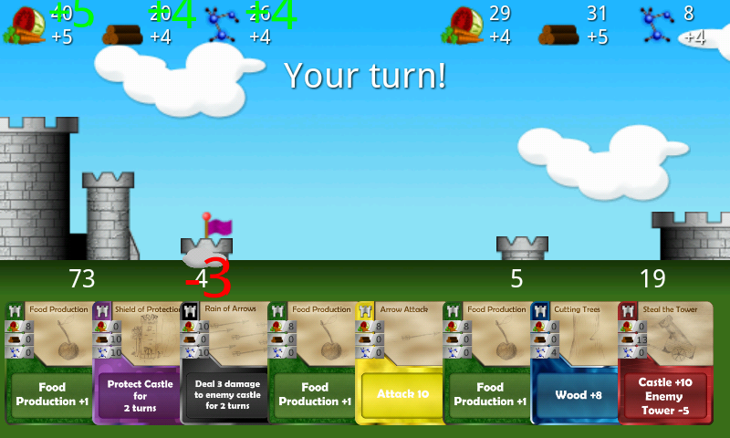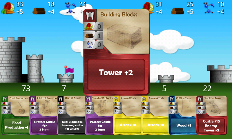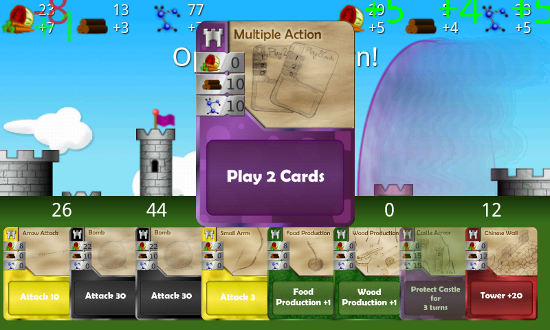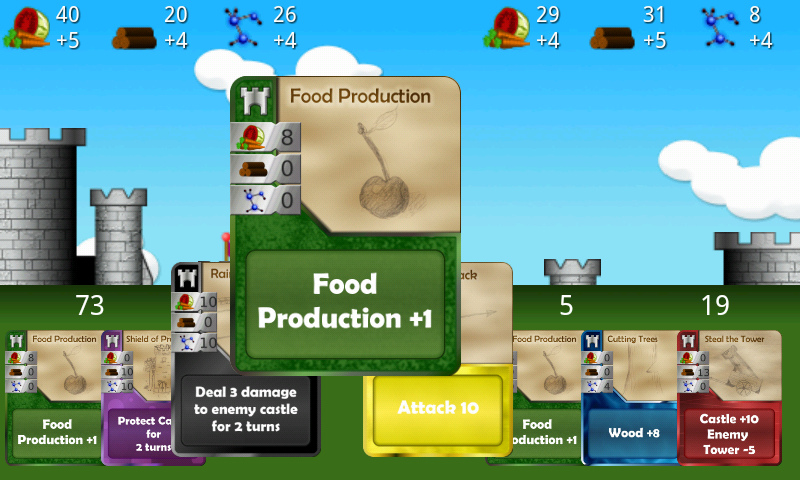 You can play Castles under Siege against your friends and you can play it against the AI. Our AI system has 3 difficulties; easy, normal and hard. The difference between the modes is the ability for the AI to see more moves ahead and the ability to value cards according to the current game situation.
