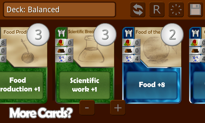 From this deck of cards you get 8 cards to begin with. To be able to play those cards you need to proper resources.